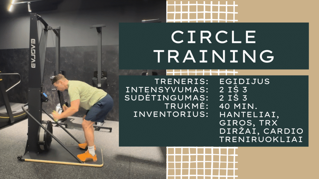 Tai vidutinio arba aukšto intensyvumo treniruotės, dažnu atveju sudėliotos ‘stotelių’ principu pagal nustatytus laiko intervalus. Rodomos įvairios progresijos. Šiose treniruotėse naudojamas inventorius – hanteliai, štangos, giros, kimštiniai pasunkinti kamuoliai, funkciniai diržai, pasipriešinimo gumos, dėžės ir kitos priemonės. Šiose treniruotėse ugdoma galia, jėga ir ištvermė.